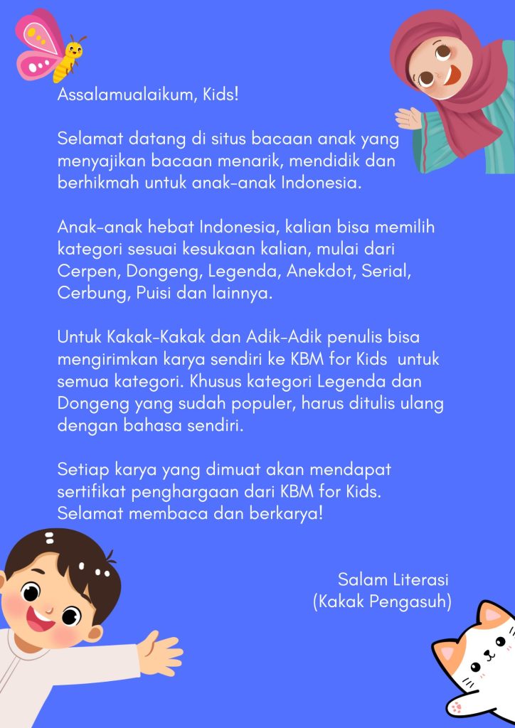 KBM for Kids hadir untuk menemani kamu dalam memilah dan memilih bacaan yang sehat dan bermanfaat buat anak-anak.